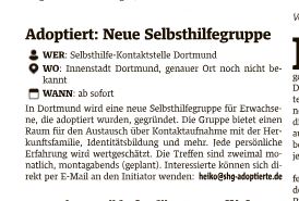 Welche Netzwerke / Kontaktmöglichkeiten bestehen außer der „DO-SHG für Adoptierte”?